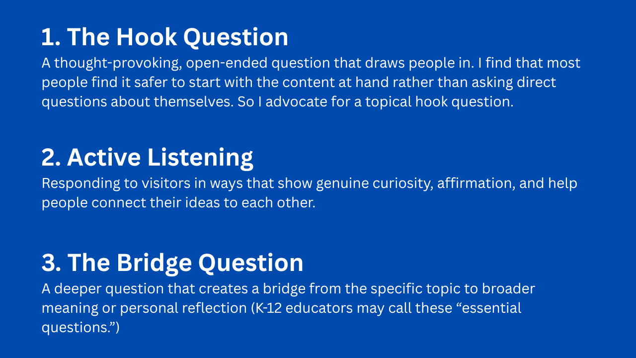 I’ve spent many hours observing educator/visitor interactions. And have conducted dozens of interviews with both educators and education managers. What I’ve learned is that there is a disconnect about what we mean when we say “dialogue.” Educators may be asking visitors questions, sure. And there may be visitor participation - yay! But as I explain in the video, that’s not necessarily dialogue.